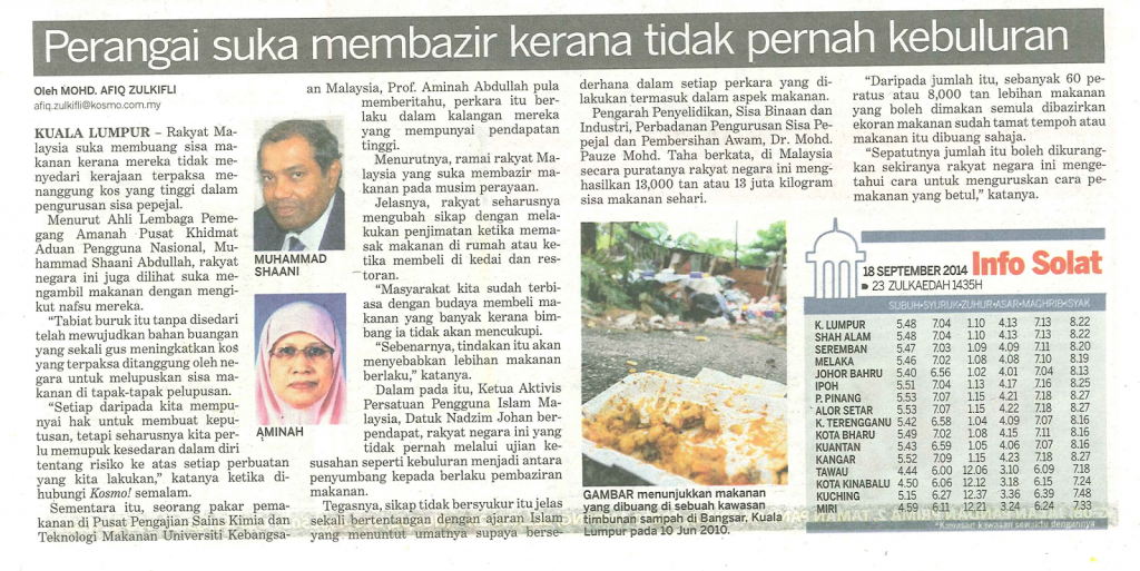 2129) ARKIB BERITA PPIM – 18/9/2014 KOSMO – Perangai Suka Membazir Kerana Tidak Pernah Kebuluran