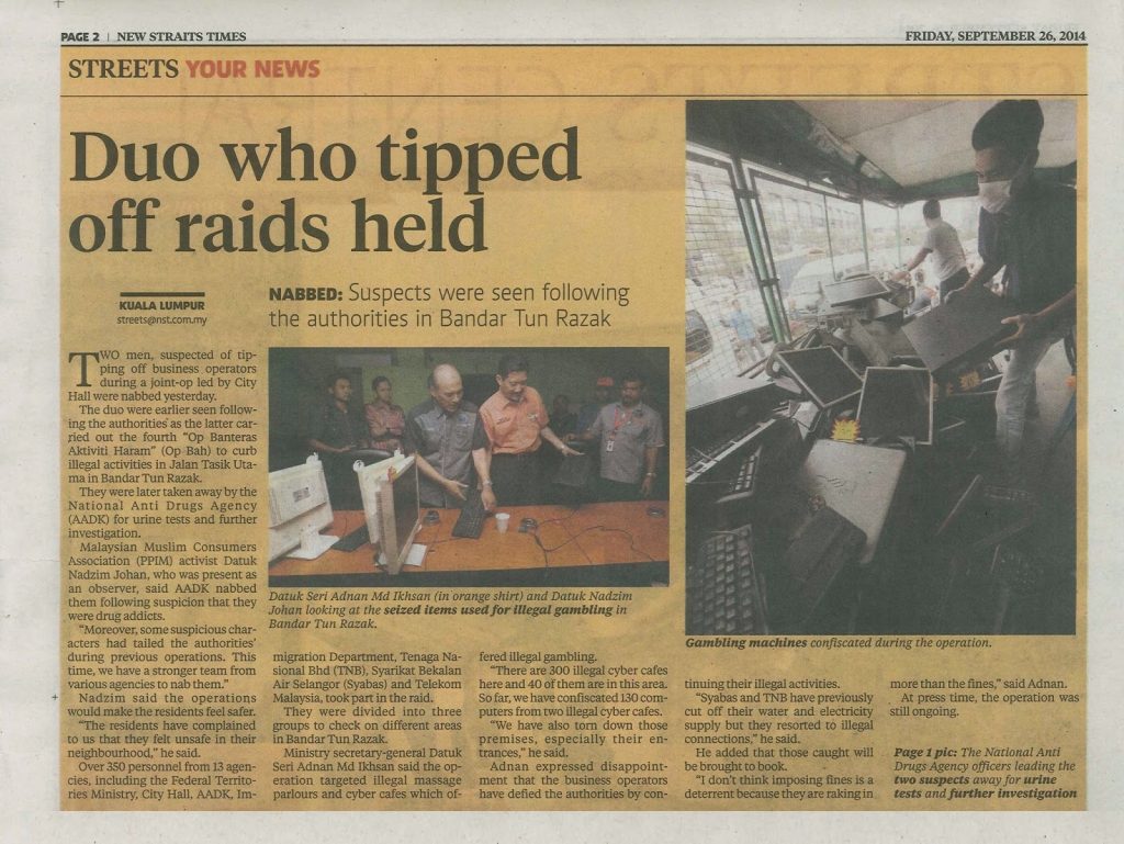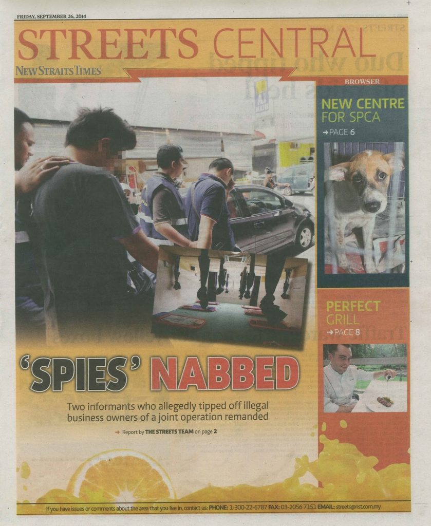 2137) ARKIB BERITA PPIM – 26/9/2014 NEW STRAITS TIMES – ‘Spies’ nabbed, Duo Who Tipped Off Raids Held