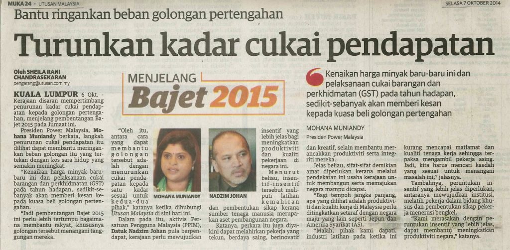 2143) ARKIB BERITA PPIM – 7/10/2014 UTUSAN MALAYSIA – Turunkan Kadar Cukai Pendapatan