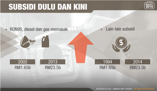 Dengan BR1M, ia hanya dapat memenuhi keperluan waktu tertentu seperti waktu persekolahan dan perayaan. Ini tidak banyak membantu,” katanya. Beliau berkata, kerajaan jelas memainkan istilah rasionalisasi subsidi apabila rakyat juga akan menanggung kenaikan harga barang dengan peningkatan harga bahan bakar. “Ini sesuatu yang ironi dalam erti kata rasionalisasi subsidi. Mereka naikkan harga minyak, begitu juga harga makanan akan meningkat seiring dengan harga petrol. “Rasionalisasi subsidi tak begitu beri kesan kerana barangan yang diberikan subsidi akan terus mencatatkan kenaikan harga. Saya tak nampak rasional kenaikan harga minyak,” katanya kepada The Malaysian Insider. Semasa pembentangan bajet semalam, Najib yang juga menteri kewangan berkata,