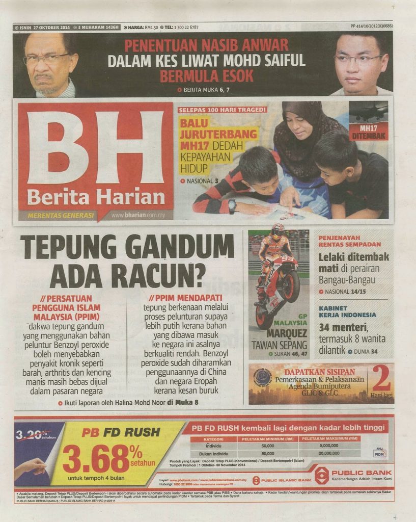 2186) BERITA HARIAN 27/10/2014 – Tepung Gandum Ada Racun?