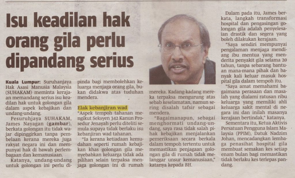 2190) BERITA HARIAN 28/10/2014 – Isu Keadilan Hak Orang Gila Perlu Dipandang Serius