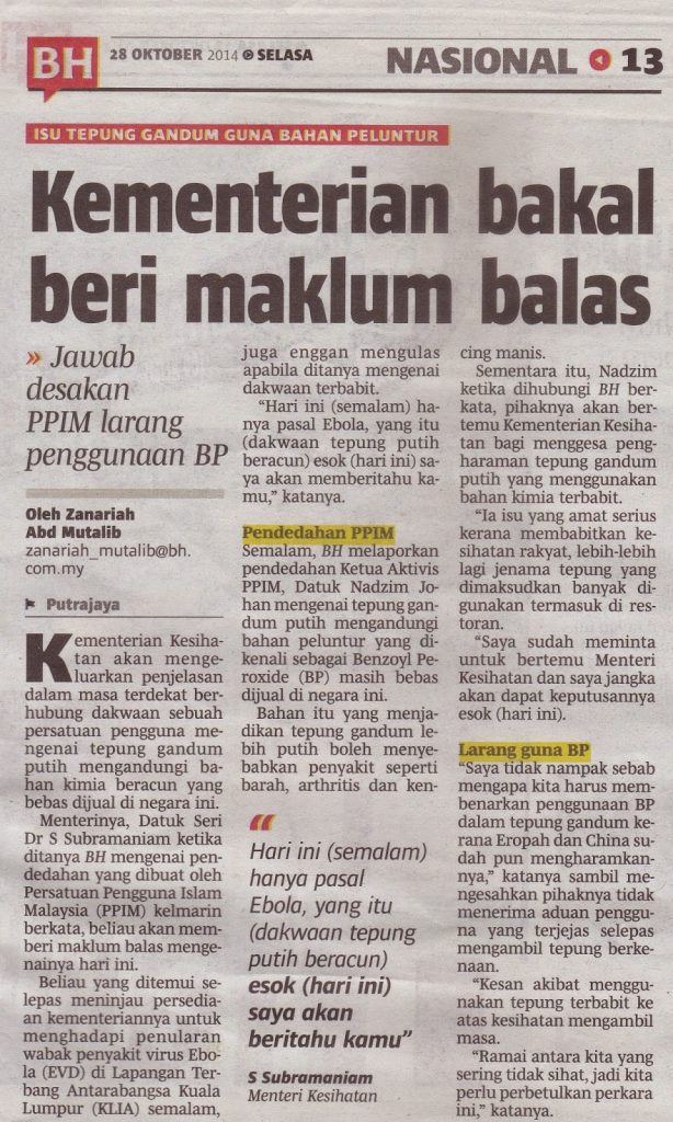 2191) BERITA HARIAN 28/10/2014 – Kementerian Bakal Beri Maklum Balas