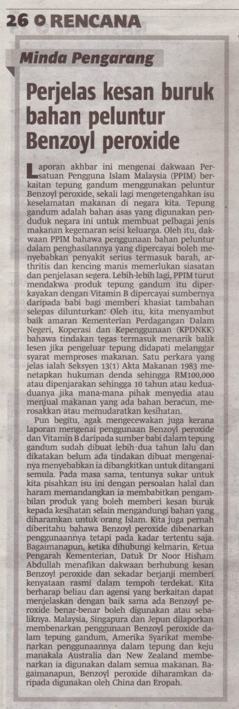 2192) BERITA HARIAN 28/10/2014 – Perjelas Kesan Buruk Bahan Peluntur Benzoyl Peroxide