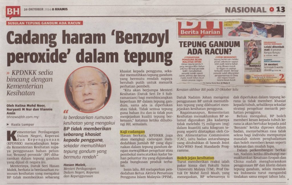 2196) BERITA HARIAN 30/10/2014 – Cadang Haram ‘Benzoyl Peroxide’ Dalam Tepung