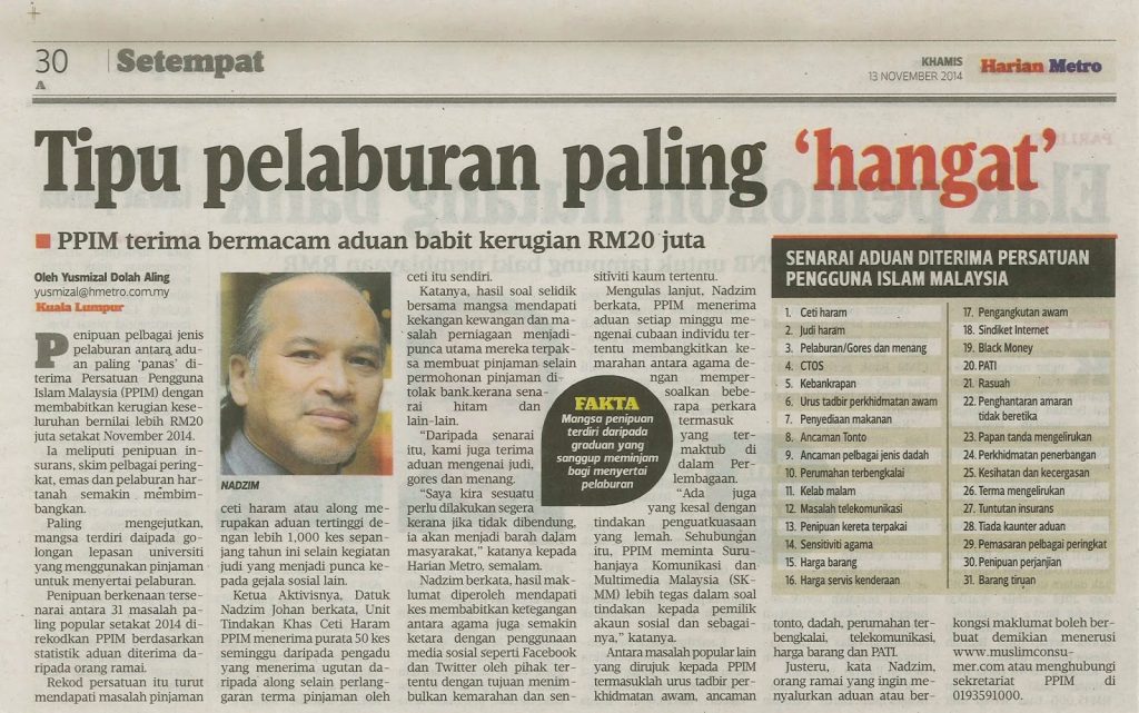 2228) HARIAN METRO 13/11/2014 – Tipu Pelaburan Paling ‘Hangat’