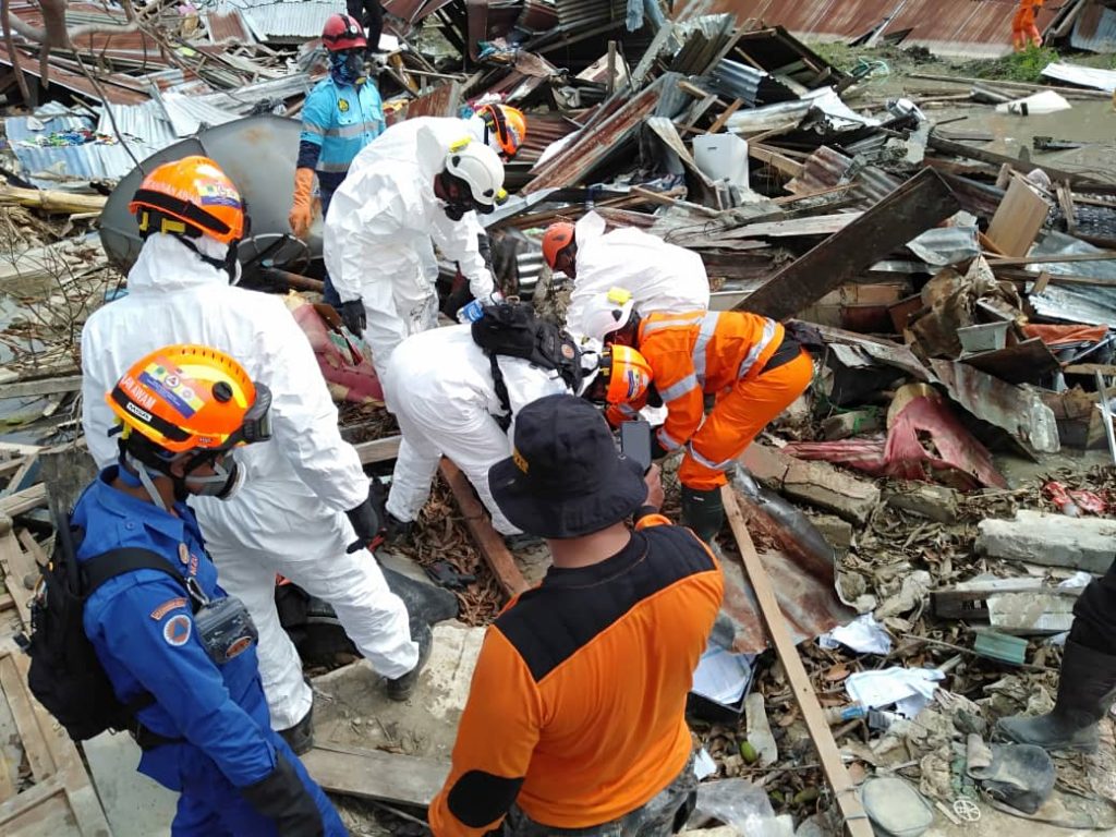 20 Okt, PALU – Hasil kerjasama antara sukarelawan Angkatan Pertahanan Awam Malaysia Dan Badan SAR Nasional Indonesia (BASARNAS) telah menemui tujuh mayat dari beribu mangsa yang ditenggelami lumpur akibat bencana gempa aliran bawah tanah pada penghujung september lalu.