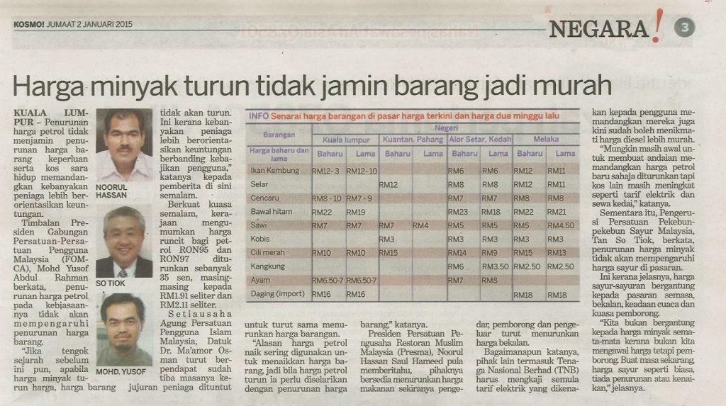 2307) KOSMO – 02/01/2015 – Harga Minyak Turun Tidak Jamin Barang Jadi Murah