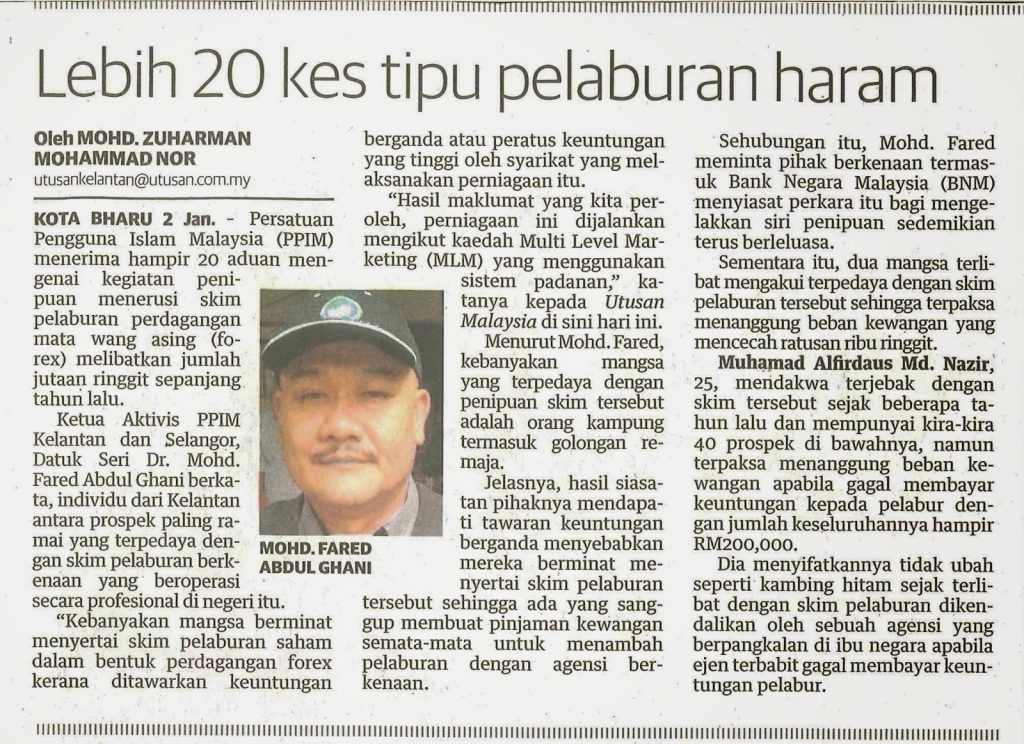 2312) UTUSAN – 03/01/2015 – Lebih 20 Kes Tipu Pelaburan Haram