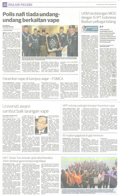 2365) UTUSAN MALAYSIA – 21/11/15 – HARAMKAN VAPE DI KAMPUS WAJAR – FOMCA