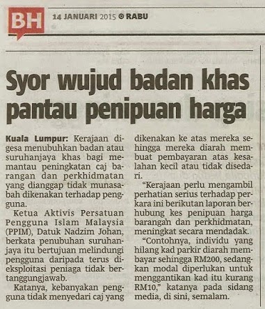 2369) BERITA HARIAN – 14/01/2015 – Syor Wujud Badan Khas Pantau Penipuan Harga
