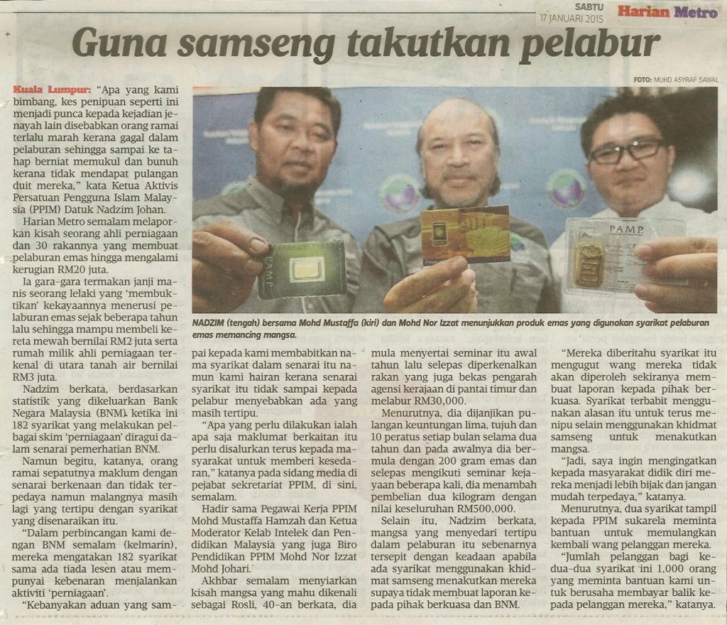 2386) HARIAN METRO – 17/01/2015 – Guna Samseng Takutkan Pelabur
