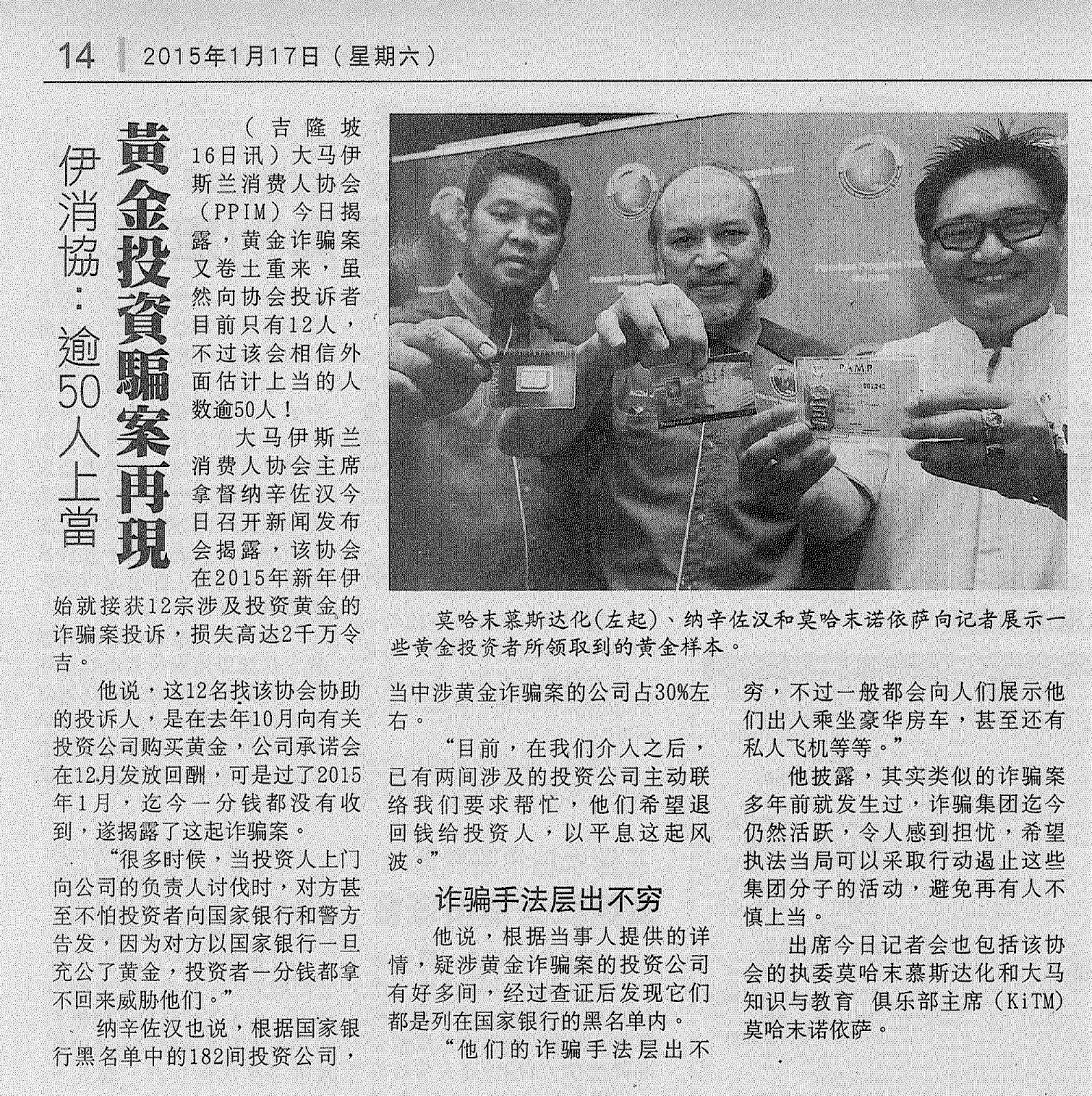 2387) SIN CHEW DAILY – 17/01/2015 – Gold Investment Scam