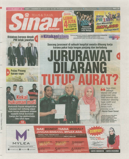 2416) SINAR HARIAN – 5/12/15 – DIBUANG KERJA KERANA TUTUP AURAT