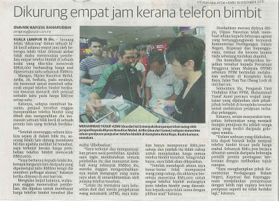 2442) UTUSAN MALAYSIA – 16/12/15 – DIKURUNG EMPAT JAM KERANA TELEFON BIMBIT