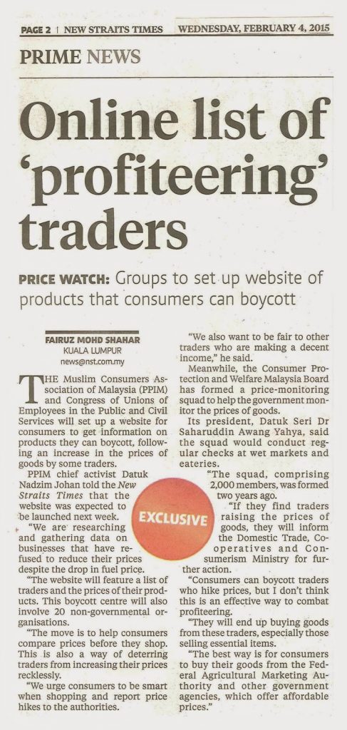 2451) NEW STRAITS TIMES – 04/02/2015 – Online List of ‘Profiteering’ Traders