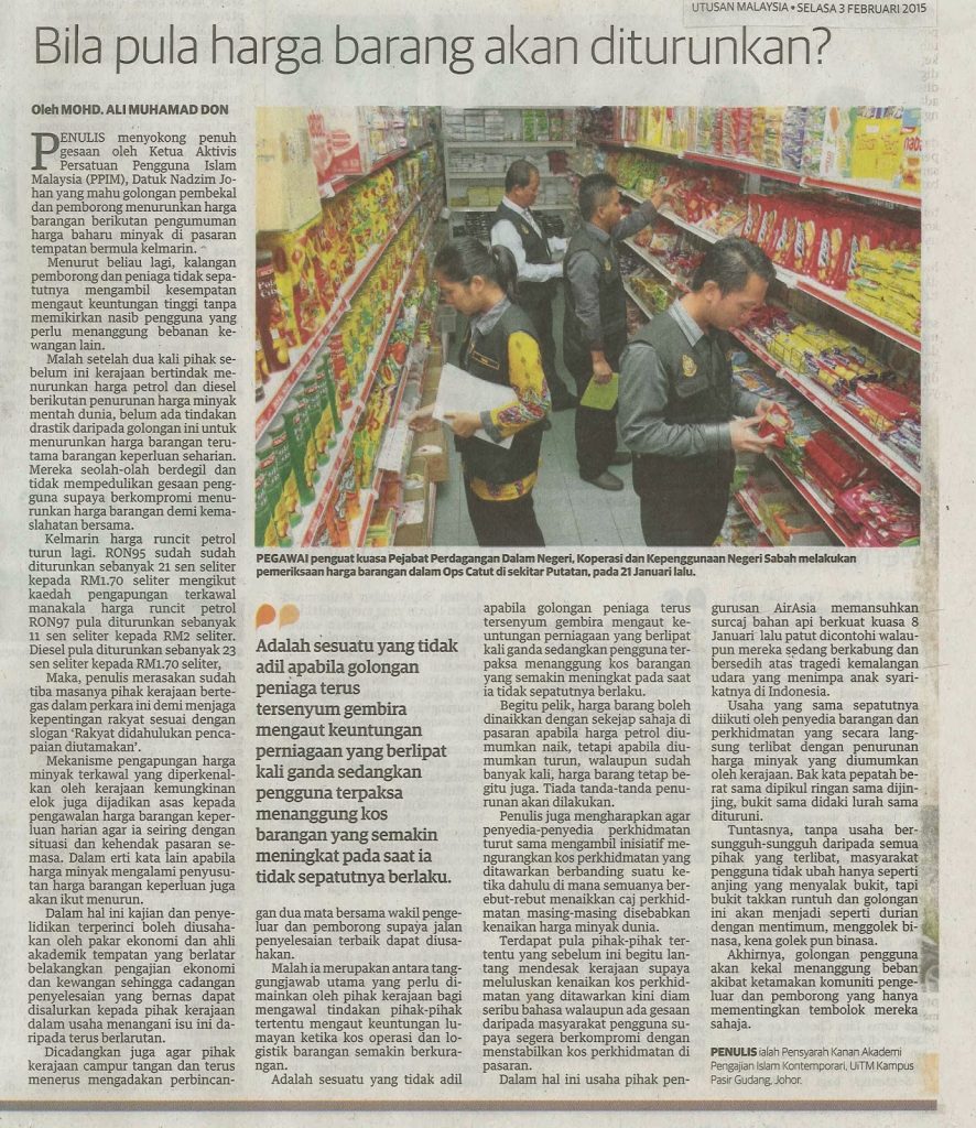 Malah setelah dua kali pihak sebelum ini kerajaan bertindak menurunkan harga petrol dan diesel berikutan penurunan harga minyak mentah dunia, belum ada tindakan drastik daripada golongan ini untuk menurunkan harga barangan terutama barangan keperluan seharian.