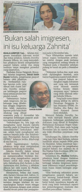 2458) UTUSAN MALAYSIA – 8/1/16 – BUKAN SALAH IMIGRESEN INI ISU KELUARGA ZAHNITA