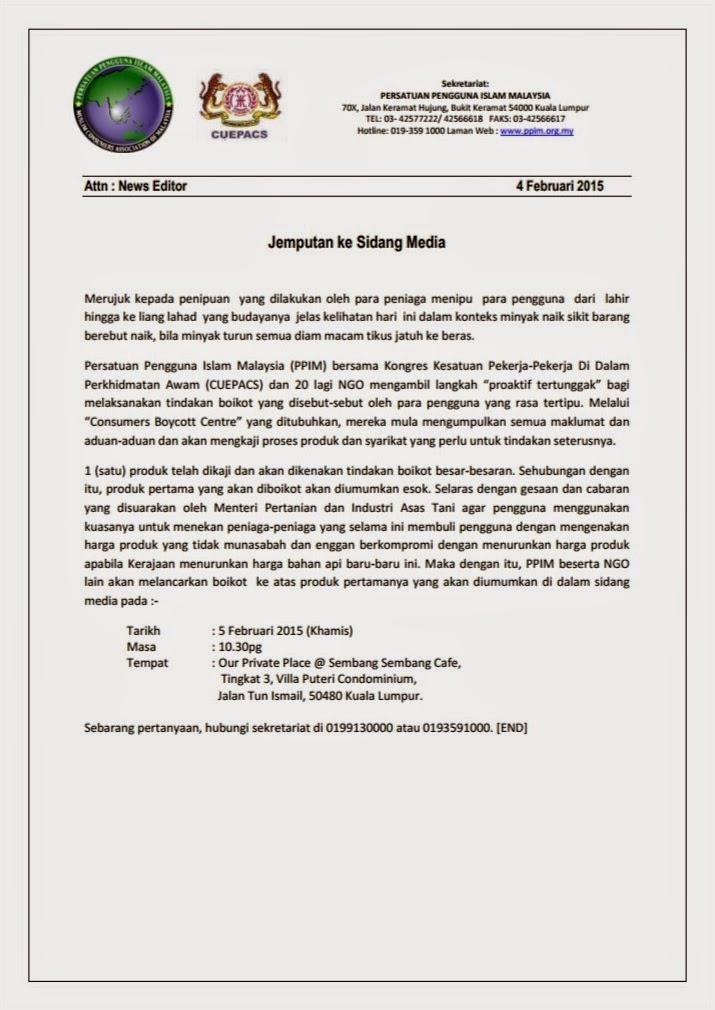 2459) AKTIVITI PPIM – 05/02/2015 – Sidang Media : Boikot Peniaga Tamak