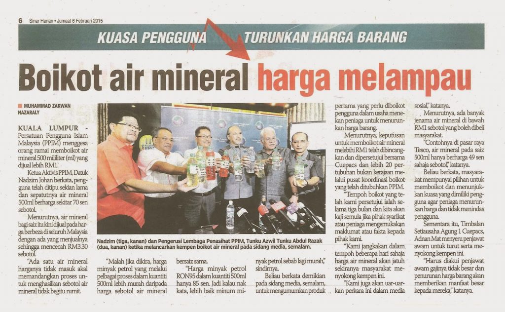 2465) SINAR HARIAN – 06/02/2015 – Boikot Air Mineral Harga Melampau