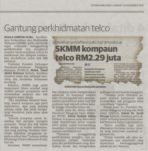Dalam pada itu, Ketua Aktivis Persatuan Pengguna Islam Malaysia (PPIM), Datuk Nadzim Johan berkata, kompaun yang dikenakan tidak memberikan kesan kepada telco dalam usaha membendung kesalahan tersebut kerana mereka mampu membayarnya.
