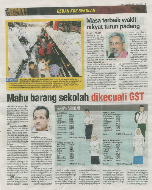 2479) SINAR HARIAN – 28/12/15 – MAHU BARANG SEKOLAH DIKECUALI GST