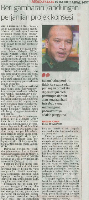 2481) MINGGUAN MALAYSIA – 27/12/15 – BERI GAMBARAN KANDUNGAN PERJANJIAN PROJEK KONSESI