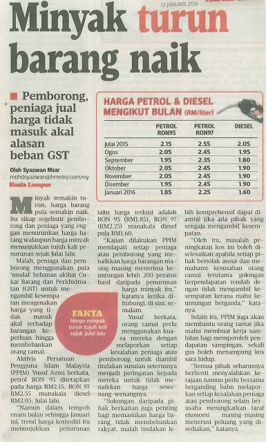 2482) HARIAN METRO – 13/1/16 – MINYAK TURUN BARANG NAIK