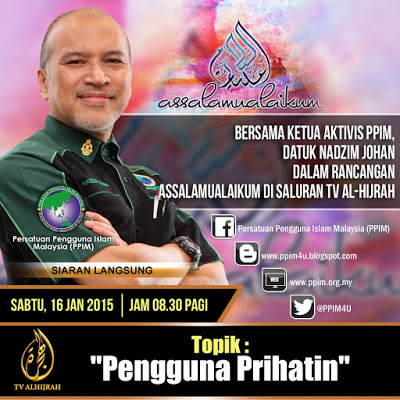 2485) TV ALHIJRAH – 16/1/16 – BERSAMA KETUA AKTIVIS PPIM, DATUK NADZIM JOHAN DALAM RANCANGAN ASSALAMUALAIKUM MEMBINCANGKAN TOPIK ” PENGGUNA PRIHATIN “