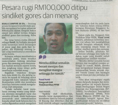Dalam pada itu, Pengarah Unit Tindakan Khas PPIM, Yusuf Azmi berkata, pihaknya menerima kira-kira 150 aduan kes membabitkan jumlah kerugian sebanyak RM15 juta sepanjang empat bulan ini akibat sindiket gores dan menang.