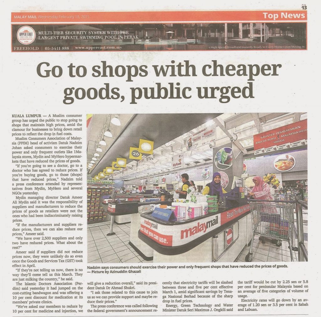 2490) MALAY MAIL – 18/02/2015 – Go To Shop With Cheaper Goods, Public Urged
