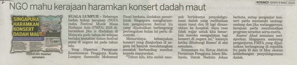 2510) KOSMO – 09/03/2015 – NGO Mahu Kerajaan Haramkan Konsert Dadah Maut