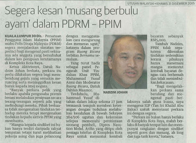 KUALA LUMPUR 30 Dis. – Persatuan Pengguna Islam Malaysia (PPIM) mahu Polis Diraja Malaysia (PDRM) segera menjalankan siasatan terperinci bagi mengenal pasti sekiranya ada anggota yang bersubahat dalam kes penipuan terutamanya di Kompleks Kota Raya.