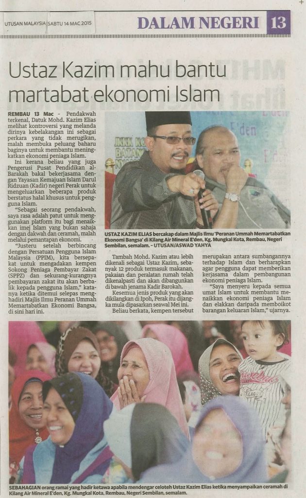 2513) UTUSAN – 14/03/2015 – Ustaz Kazim Mahu Bantu Martabat Ekonomi Islam