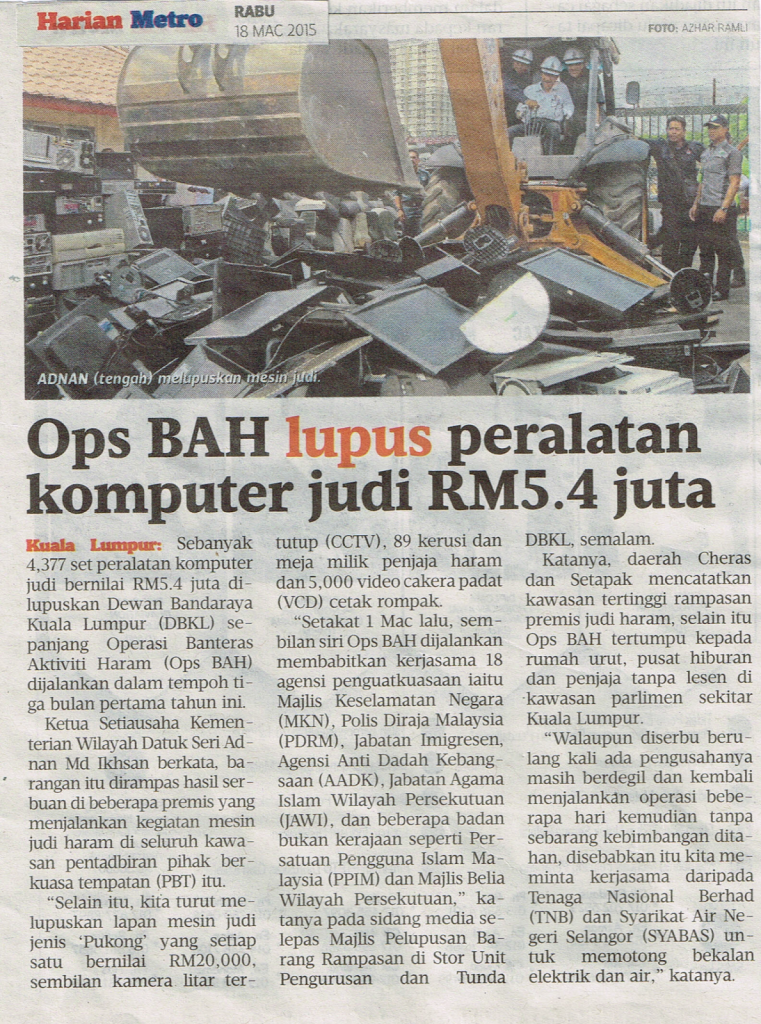 2517) HARIAN METRO – 18/03/2015 – Ops BAH Lupus Peralatan Komputer Judi RM5.4 Juta