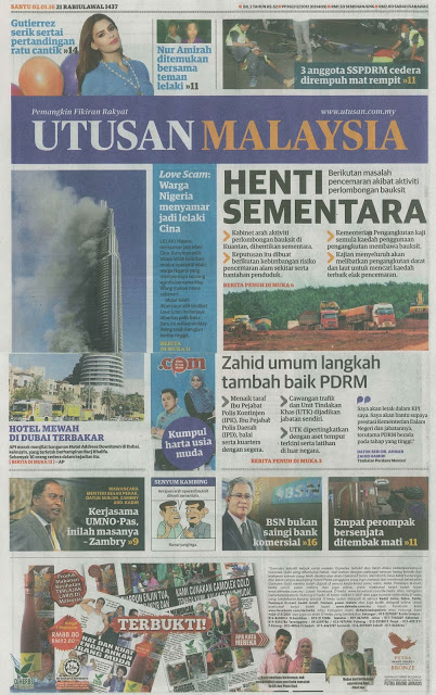 2519) UTUSAN MALAYSIA – 2/1/16 – MENYAMAR JADI LELAKI CINA