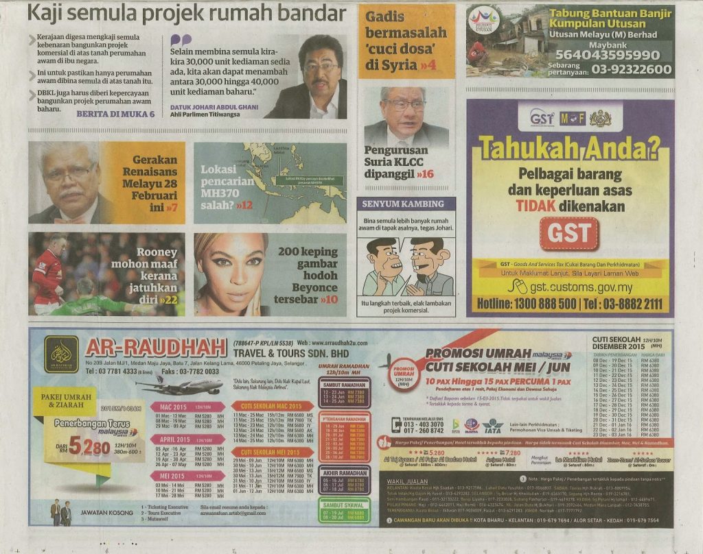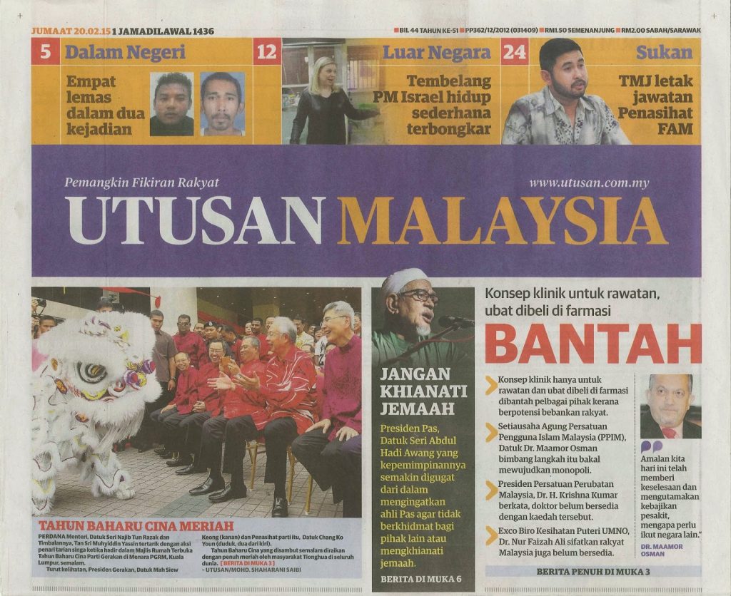 2533) ARKIB BERITA PPIM – 20/02/2015 – UTUSAN – Dikhuatiri Wujud Monopoli