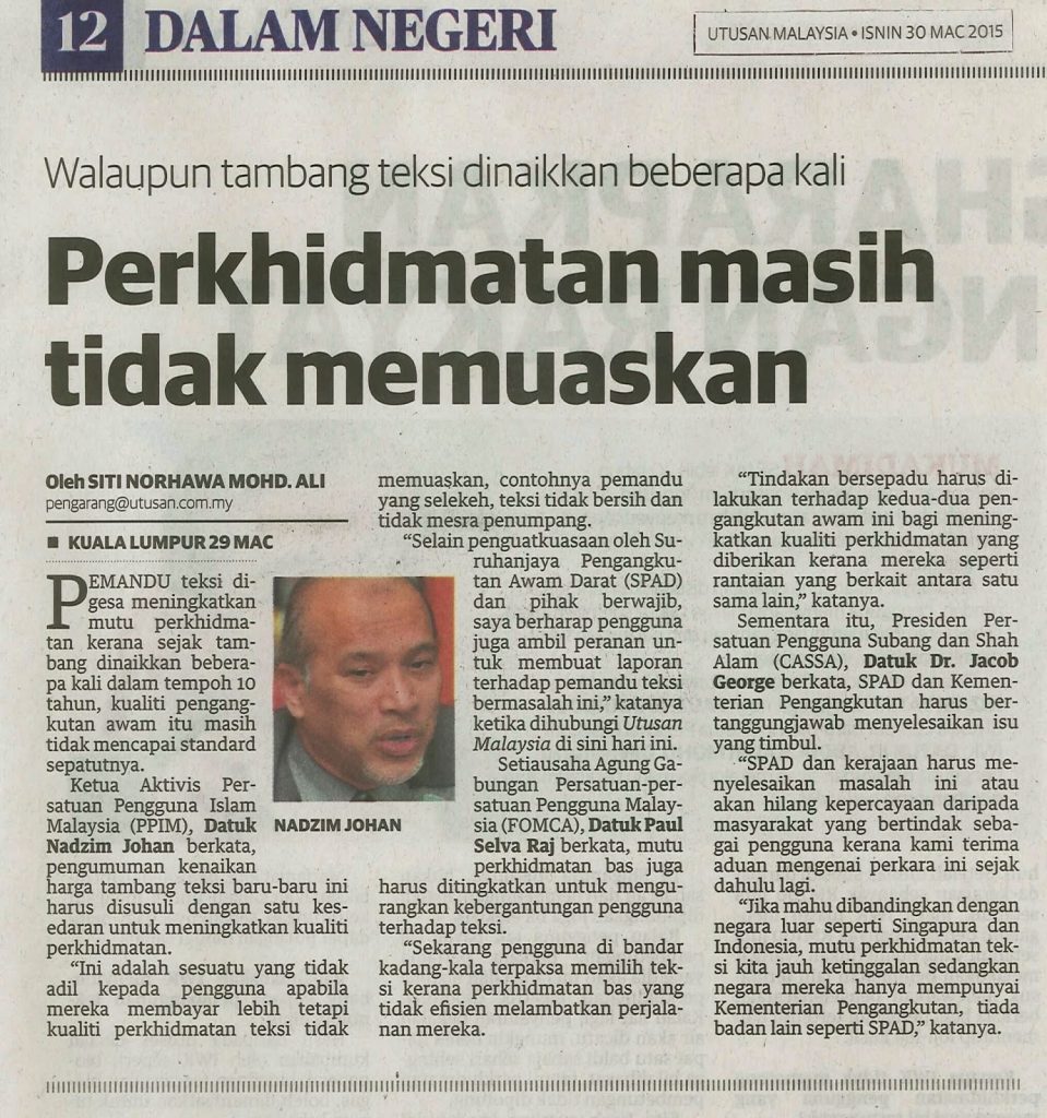 2535) UTUSAN – 30/03/2015 – Perkhidmatan Masih Tidak Memuaskan