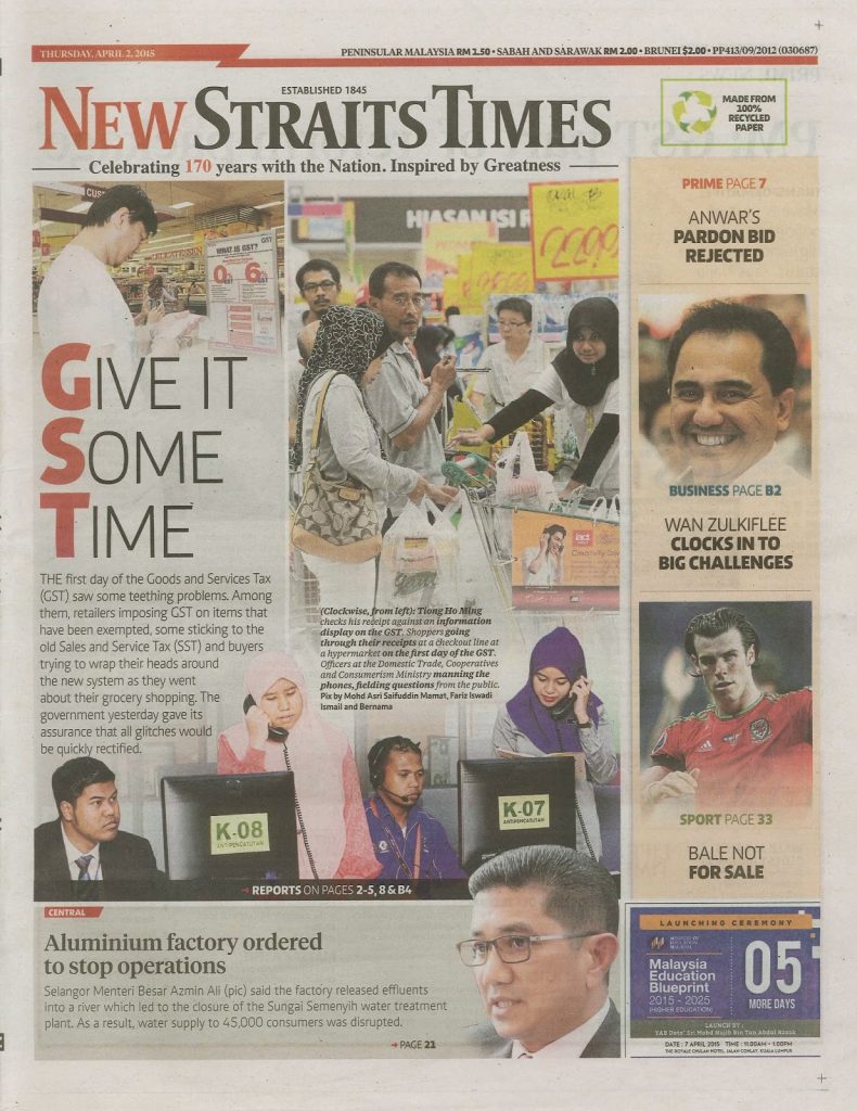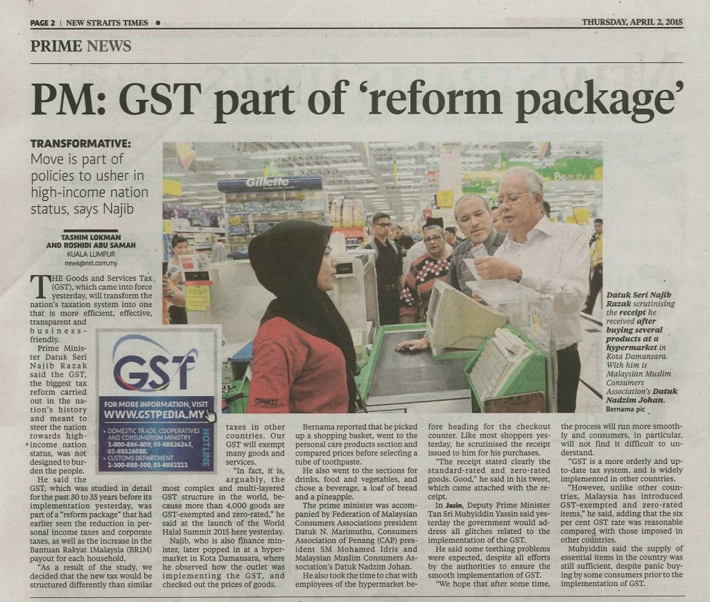 2538) NEW STRAITS TIMES – 02/04/2015 – PM: GST Part of ‘Reform Package’