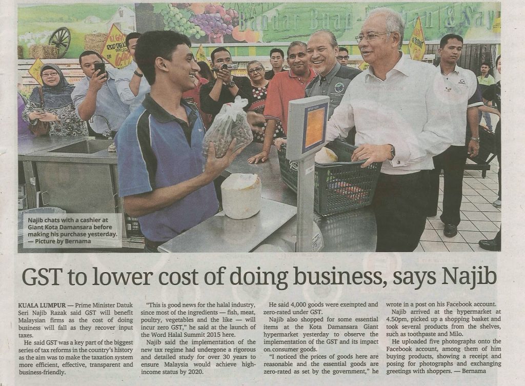 2540) MALAY MAIL – 02/04/2015 – GST To Lower Cost Of Doing Business, Says Najib