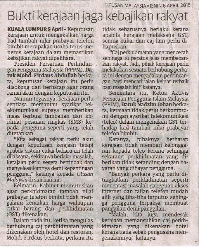 2546) UTUSAN MALAYSIA – 06/04/2015 – Bukti Kerajaan Jaga Kebajikan Rakyat