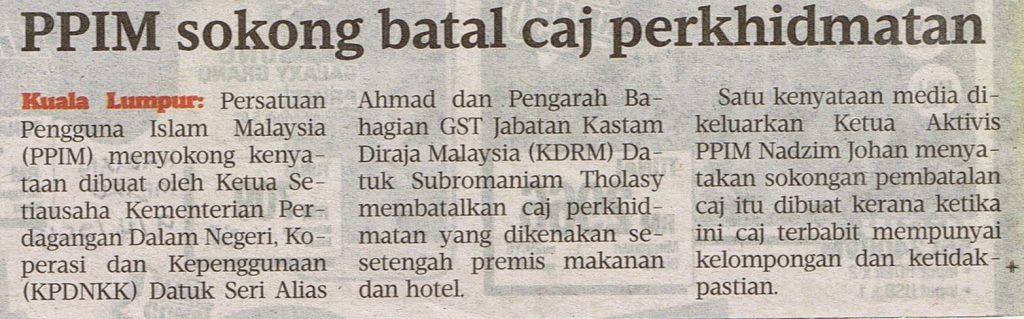 2551) HARIAN METRO – 09/04/2015 – PPIM Sokong Batal Caj Perkhidmatan