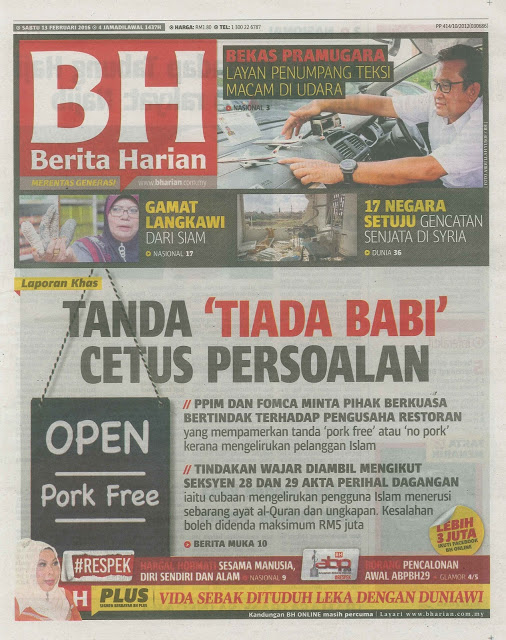 2557) BERITA HARIAN – 13/2/16 – PPIM DAN FOMCA MINTA PIHAK BERKUASA BERTINDAK TERHADAP PENGUSAHA RESTORAN