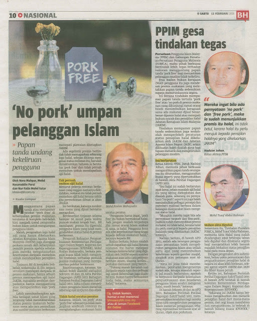“Mereka ingat bila pernyataan ‘no pork’ dan ‘free pork’ maka ia sudah menunjukkan premis itu halal, ini tidak betul kerana halal itu perlu merujuk kepada pensijilan halalnya yang dikeluarkan JAKIM”