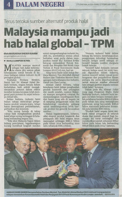 2571) UTUSAN MALAYSIA – 17/2/16 – MALAYSIA MAMPU JADI HAB HALAL GLOBAL – TPM