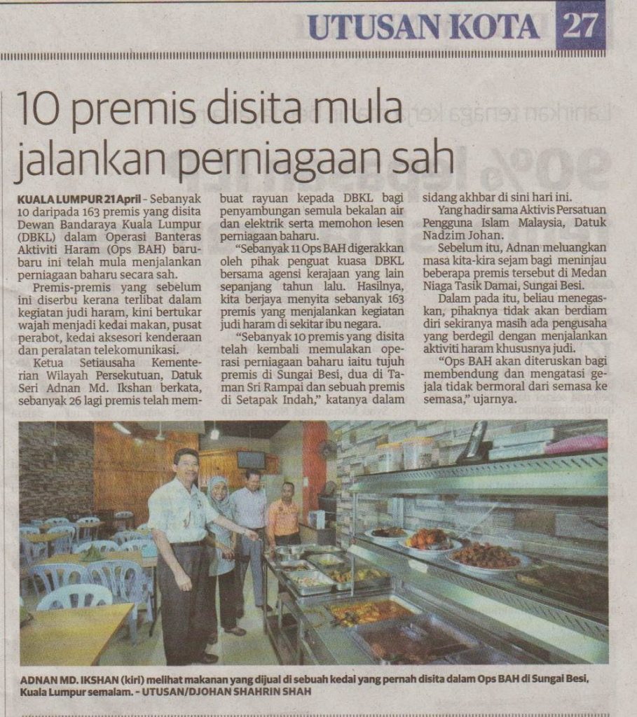 2578) UTUSAN MALAYSIA – 22/04/15 – 1O Premis Disita Mula Jalankan Perniagaan Sah
