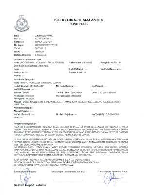 Laporan polis yang dibuat di Balai Polis Dang Wangi jam 10.00 pagi tadi juga menggesa pihak berkuasa memberi perhatian sewajarnya memandangkan ia melibatkan pimpinan negara yang turut mencalar nama negara.
