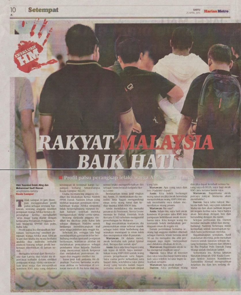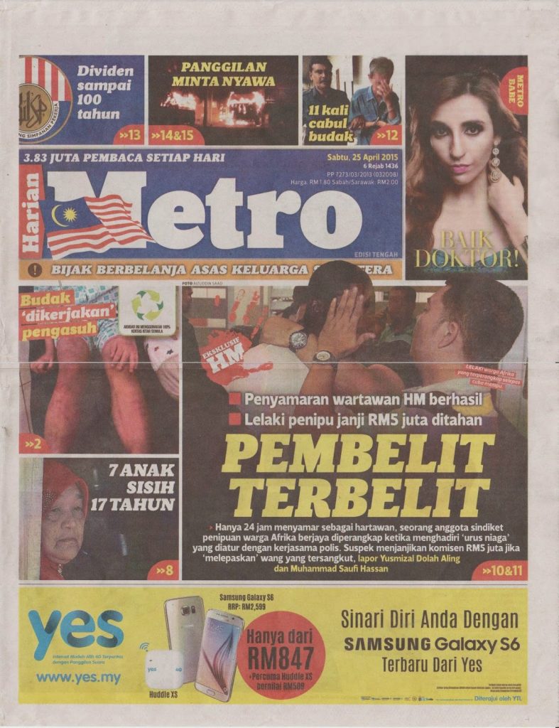 2594) HARIAN METRO – 25/04/15 – Rakyat Malaysia Baik Hati
