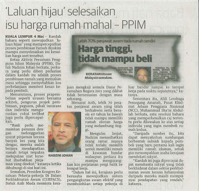 2603) UTUSAN MALAYSIA – 5/3/16 – “LALUAN HIJAU” SELESAIKAN ISU HARGA RUMAH MAHAL – PPIM