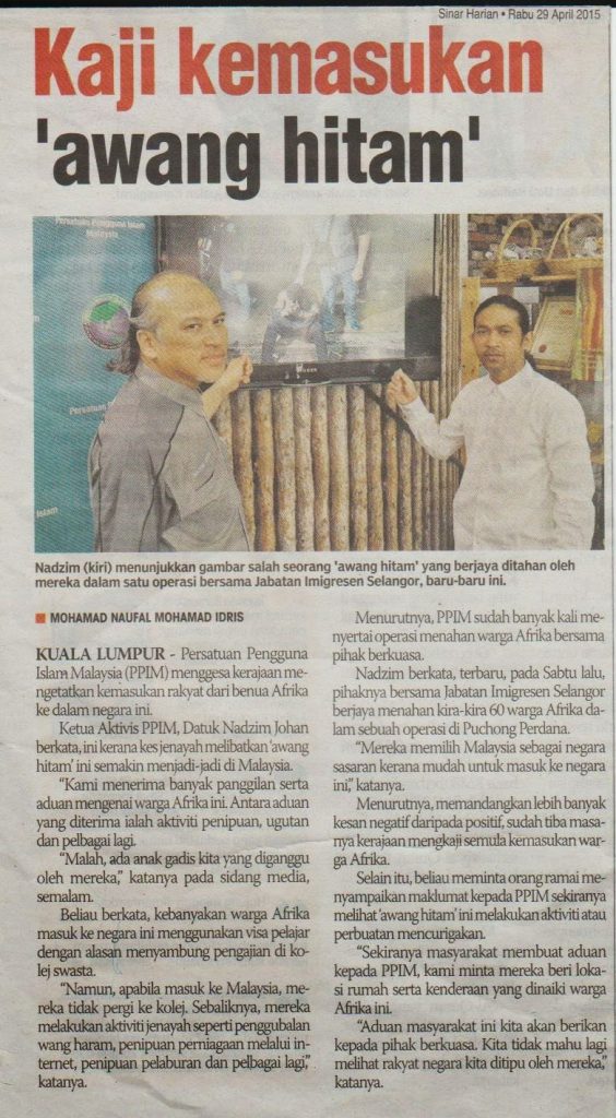 2608) SINAR HARIAN – 29/04/15 – Kaji Kemasukan ‘Awang Hitam’